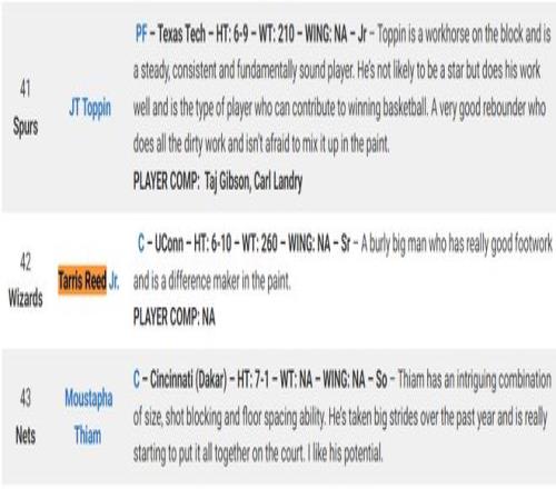 值得一提的是里德在2026届选秀排名只仅仅排在第42位,也就是次轮12位,休斯顿火箭队手握公牛26年次轮(39顺位),火箭队可以培养一个能接替卡佩拉的第三中锋,等亚当斯老去后成为球队第二中锋。