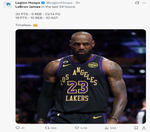 赛后最强詹黑斯利普-贝勒斯都被打服了,他写道:恭喜勒布朗打破了帕里什的生涯出场次数,他拿到19+15+10。他是有史以来最顽强的篮球运动员之一。