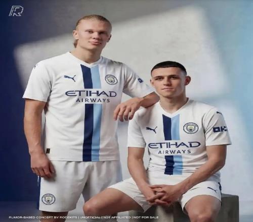 有设计师已根据这一热门设计,PS出了曼城球员身着该球衣的上身效果图,提前展现了球衣的赛场视觉效果。