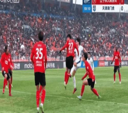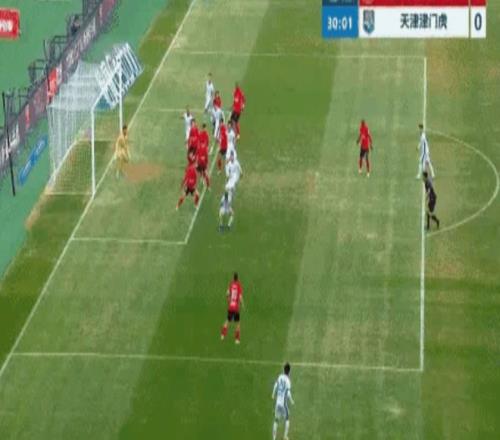 丢球后的津门虎急于扳平比分,第30分钟他们终于找到机会,左路定位球吊入禁区制造乱战,王献钧的头球攻门被韩镕泽神勇挡出,吉列尔梅跟上补射,又被辽宁铁人的后卫用身体挡出,两次近在咫尺的射门都没能转化为进球,津门虎的运气属实差了点。